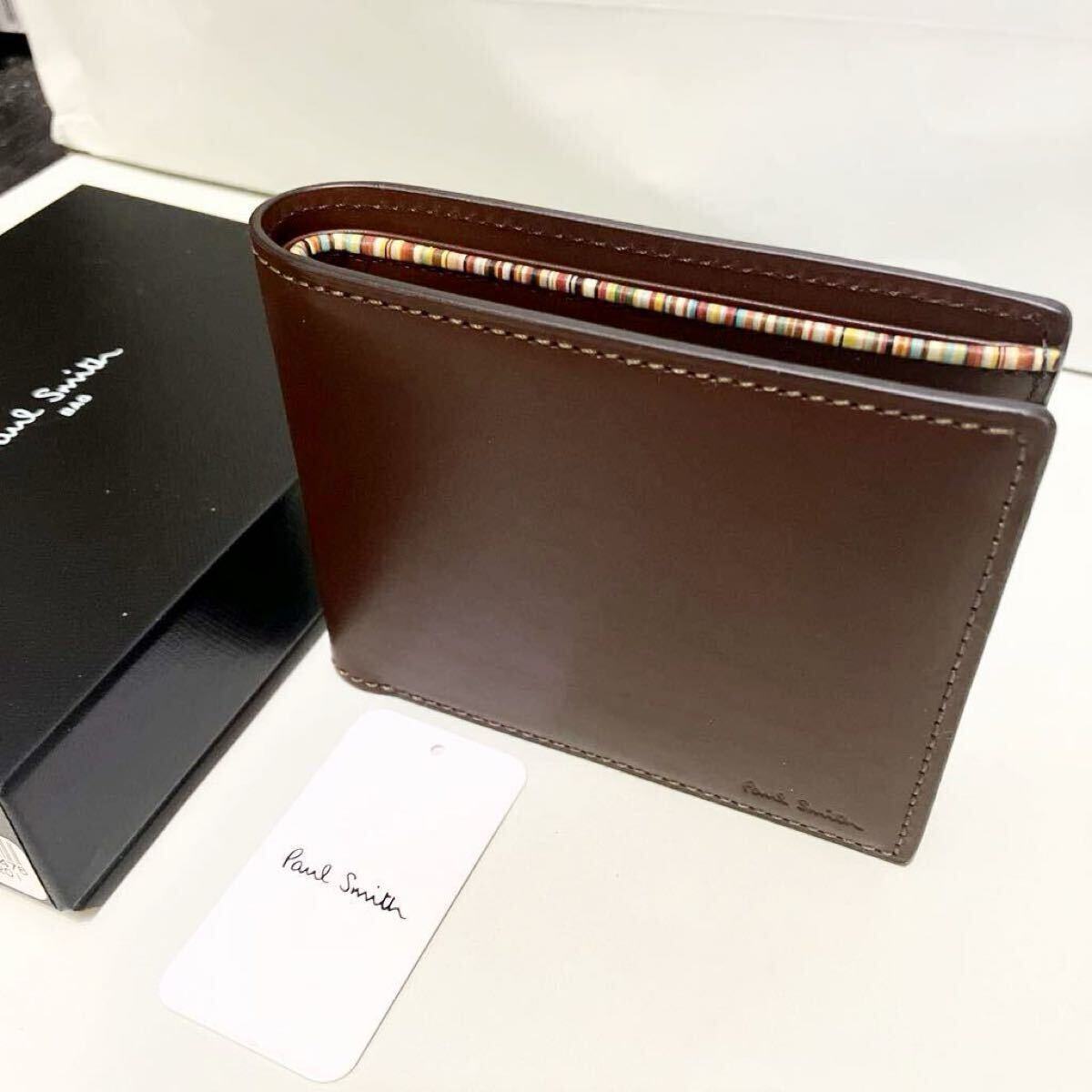 > ●新品●送料込 ポールスミス ブラウン×縁マルチストライプ 定番二つ折財布 本牛革 札入れ カード入れ Paul Smith