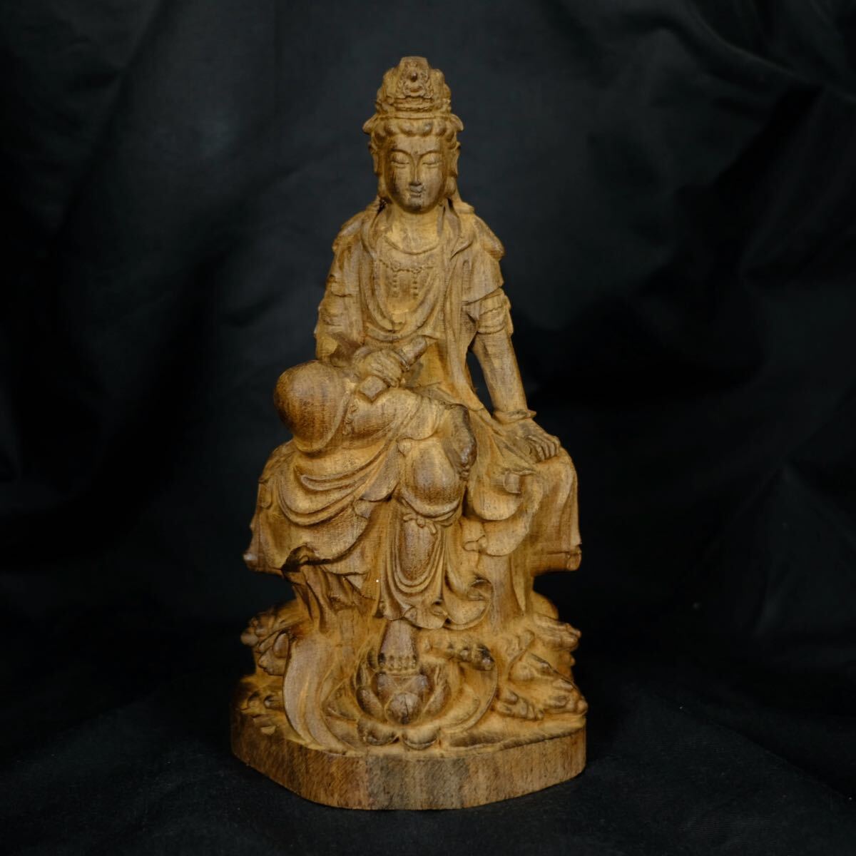 > アンティーク 観音坐像 木彫り 彫刻作品 仏像 昭和レトロ ビンテージ 古物 自在観音菩薩 仏教美術 置物 明治 大正 古道具