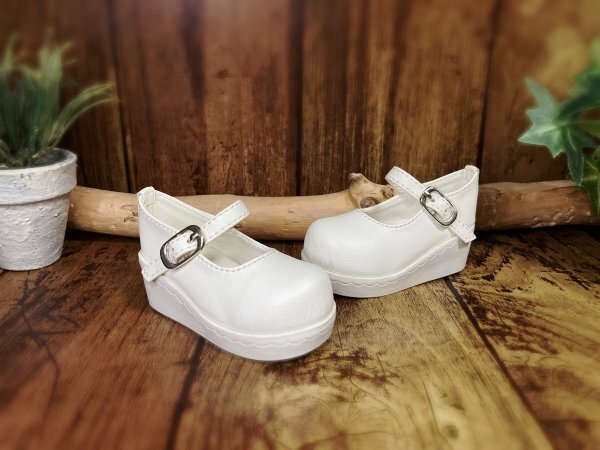 - ●厚底ストラップシューズ*ホワイト*DD*DDdy/SD(女の子)共通サイズ(ドール靴の内寸:縦 約7.5cm / 横 約3.0cm) ●