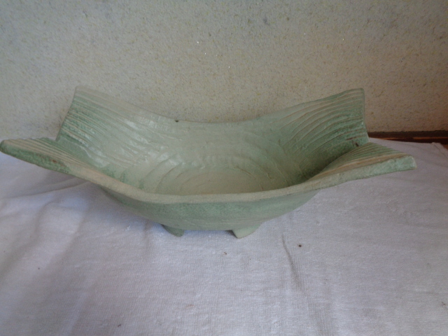 - 陶器 水盤・花活け・花生け・花器/花瓶-活花用花器/薄緑色・魚のひれ模様?/
