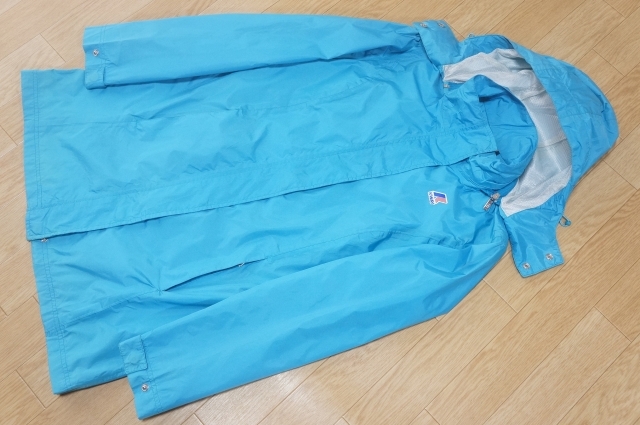 - G699 即決 K-WAY ケーウェイ フード脱着式 裏地メッシュ レインフーデットコート トレッキング XS (日本S~M 位) ブルー