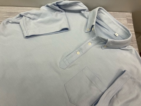 - 大きいサイズ ポロシャツ ゴルフシャツ ボタンダウン ドライ系ミニ鹿の子 XL 水色 UNIQLO★中古格安!