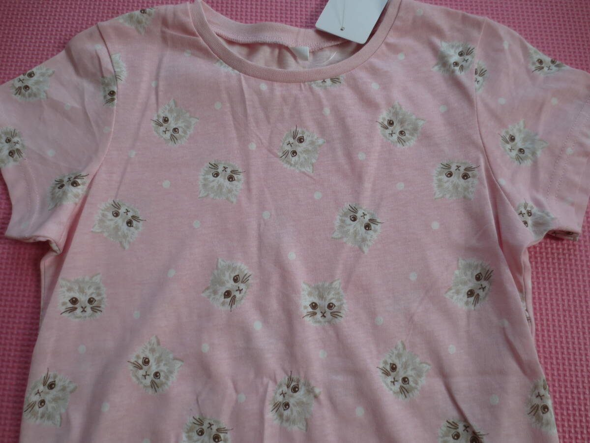 - 新品 130 ネコ柄 半袖Tシャツ ピンク ドット かわいい ねこ総柄 綿100% 小学生 女の子 夏物 120〜 送料無料