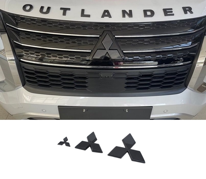 > 三菱 アウトランダーphev エンブレム カバー 3セット カーボン柄 2016-2021