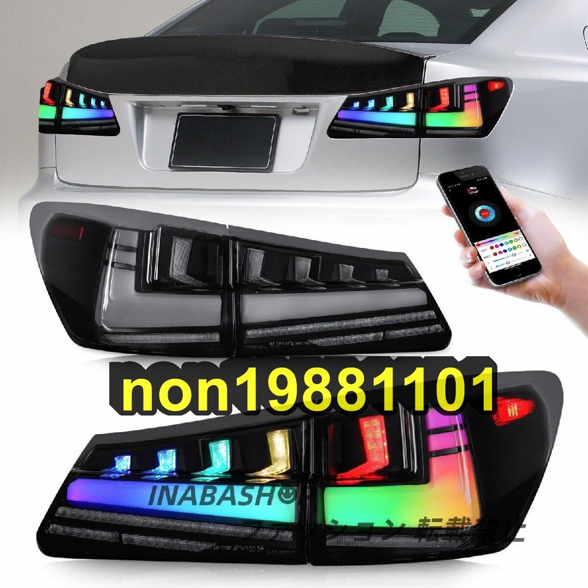 > レクサスISテールランプ IS250 IS350 GSE20 ISF RGB機能、流れるウインカー テールライトスモークレンズ 2005-2013年