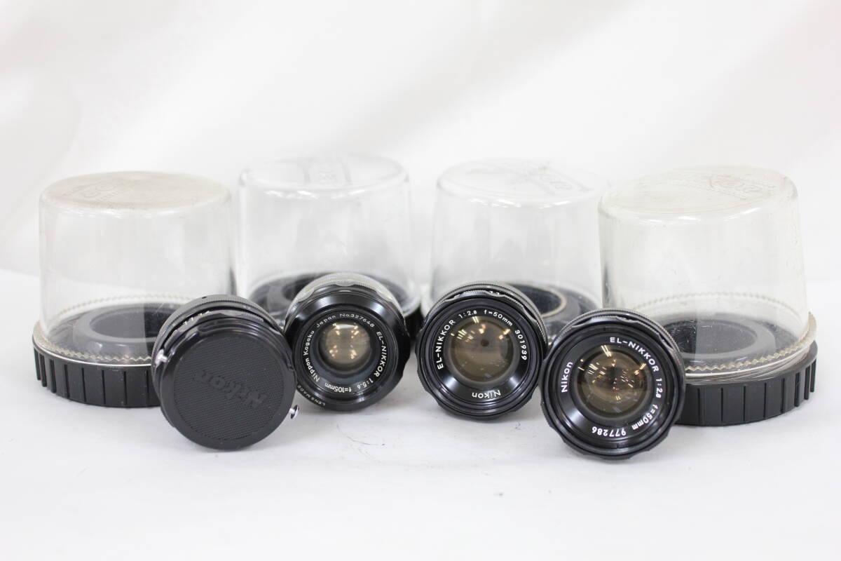 - 【返品保証】 【レンズ5点まとめ】ニコン Nikon El-Nikkor 50mm F2.8 3点 105mm F5.6 ケース付き 引き伸ばしレンズ M6111