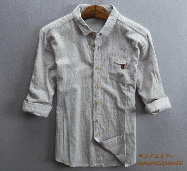 - 夏新品 リネンシャツ 七分袖シャツ メンズ 半袖シャツ 薄手 サマー 綿麻シャツ 無地 シワ感 トレンド 三色 細身 サイズ選択可 グレー S