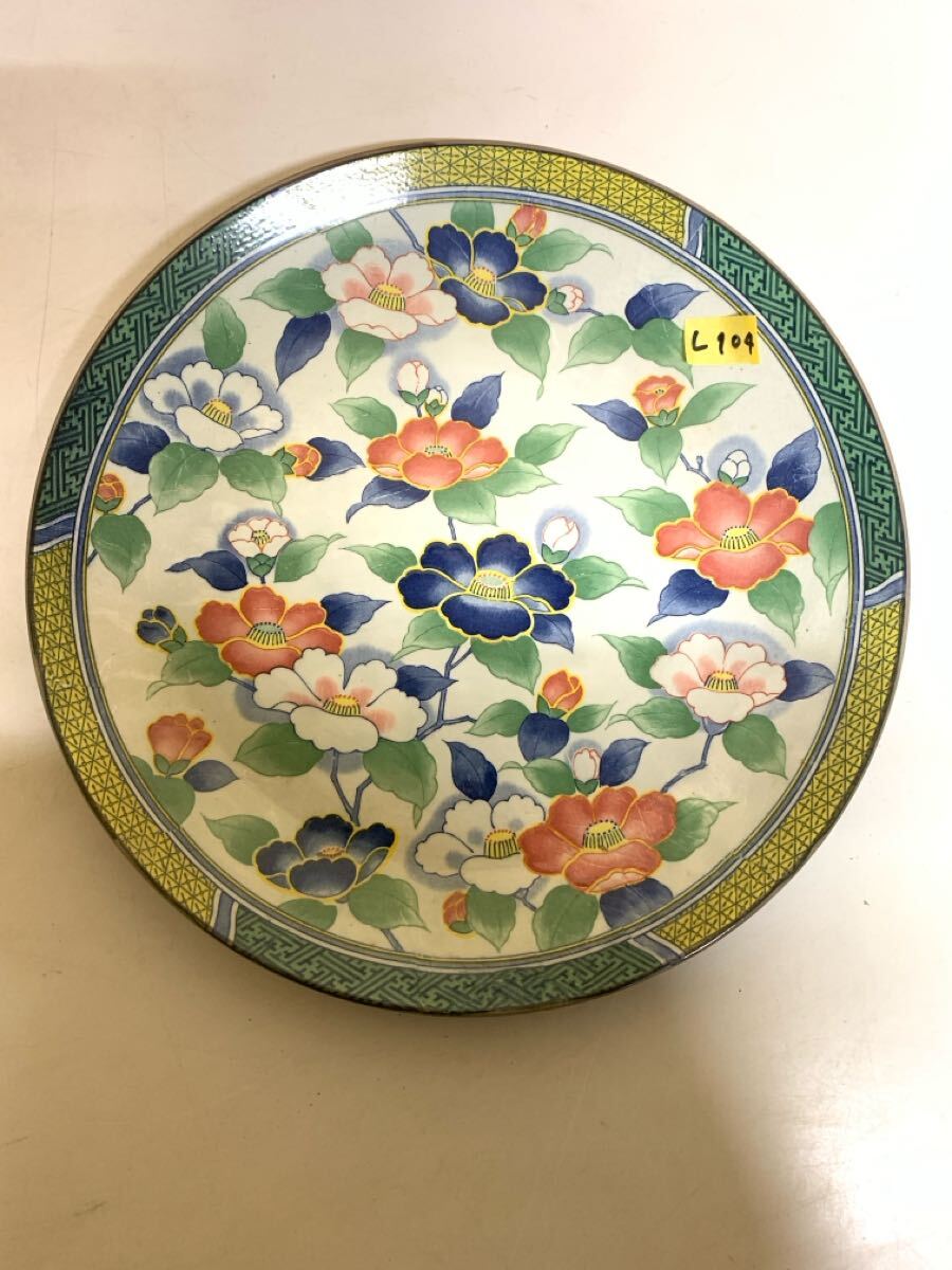 - 九谷山茶花 九谷焼 大皿 飾り皿 飾皿 絵皿 色絵 陶器 染付 花 花柄 32cm 工芸品 陶器 お皿 L104