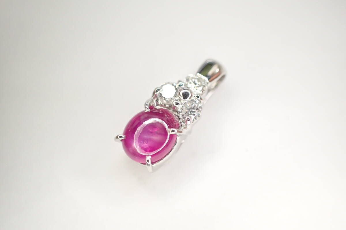 - 20/美品 Pt900 スタールビー0.90ct ダイヤ ペンダントトップ