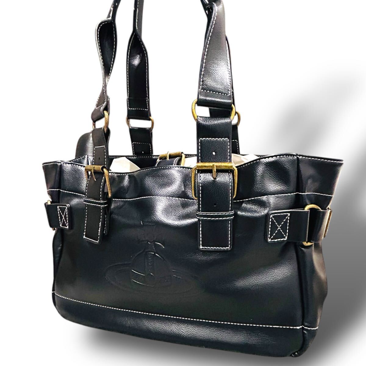 - 極美品 格安スタート 売り切り Vivienne Westwood ヴィヴィアン トートバッグ オーブ トートバッグ ブラック レザー 肩掛け 肩がけ メンズ