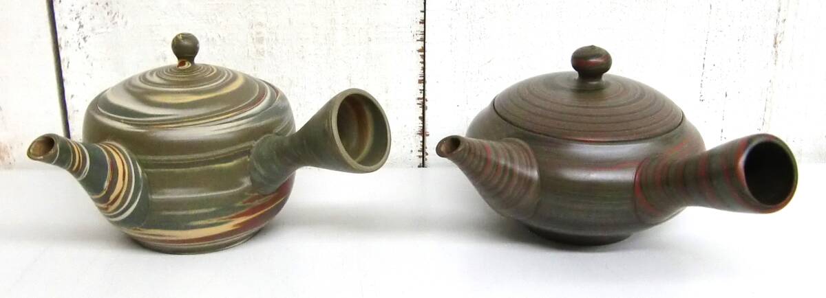 - *伝統工芸 工芸品 茶道具 *常滑焼 *マーブル 練上 練込 緑泥 茶系 *急須 お茶入れ 2点まとめ セット *茶器 茶道 時代 古物 骨董