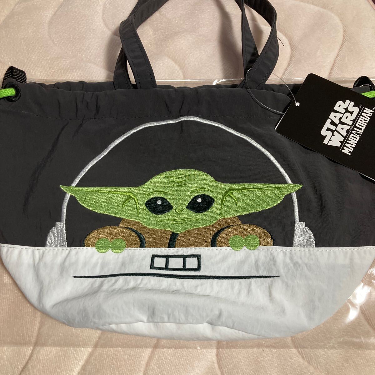 - 新品 graniph グラニフ×スターウォーズ star wars マンダロリアン グローグー ポッド ナイロンストリングバッグ 刺繍 巾着 ベビーヨーダ