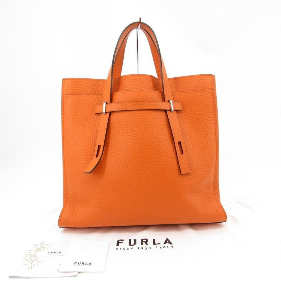 - 送料無料 超美品 フルラ FURLA トートバッグ ハンドバッグ ジョーヴェL Giove L レザー 橙 オレンジ系 メンズ