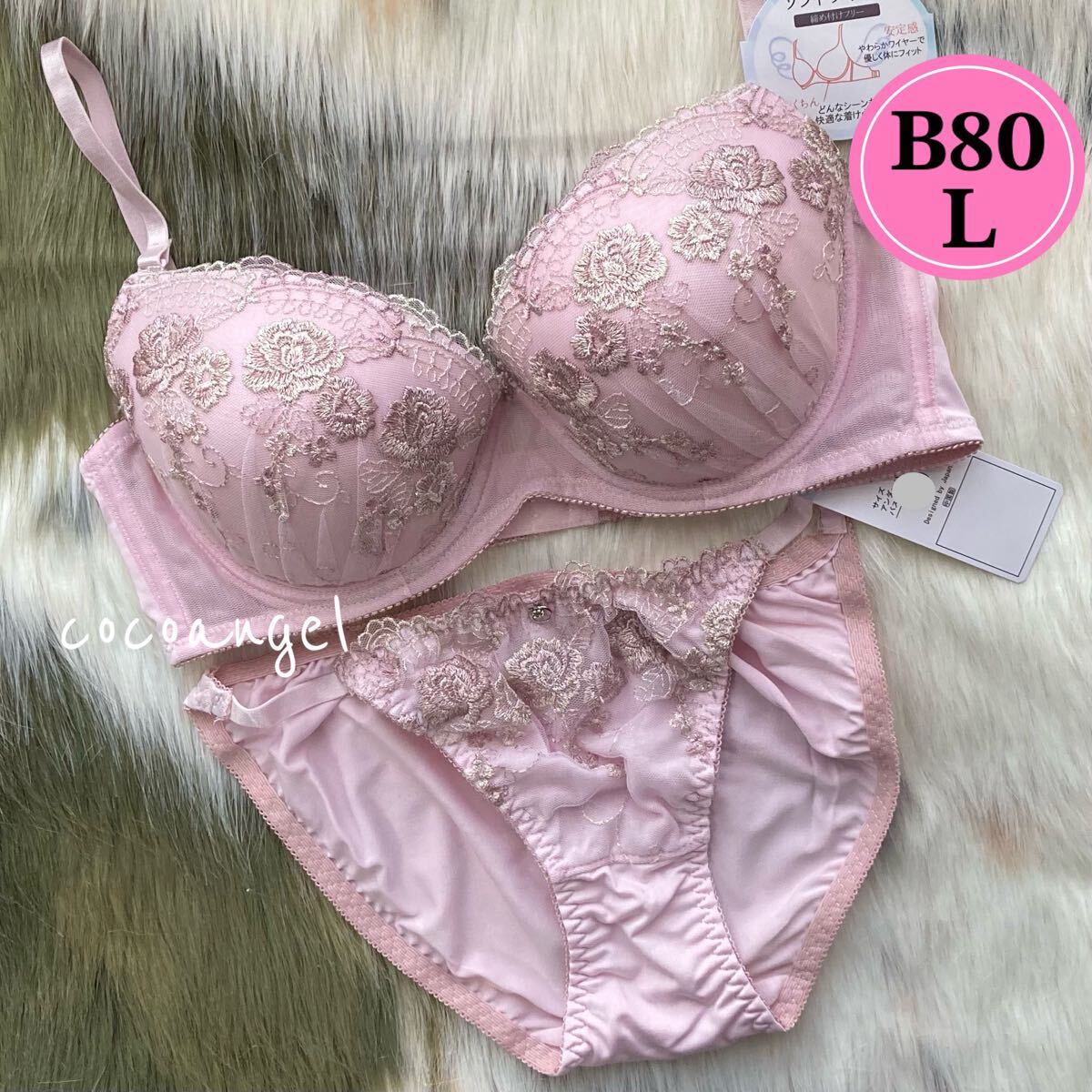 > ラスト【B80-L ピンク 上下】新品 ブラ&ショーツ ブラジャーショーツ パッド付き バラ刺しゅう ラメ セクシーパンティ グラマー Bカップ