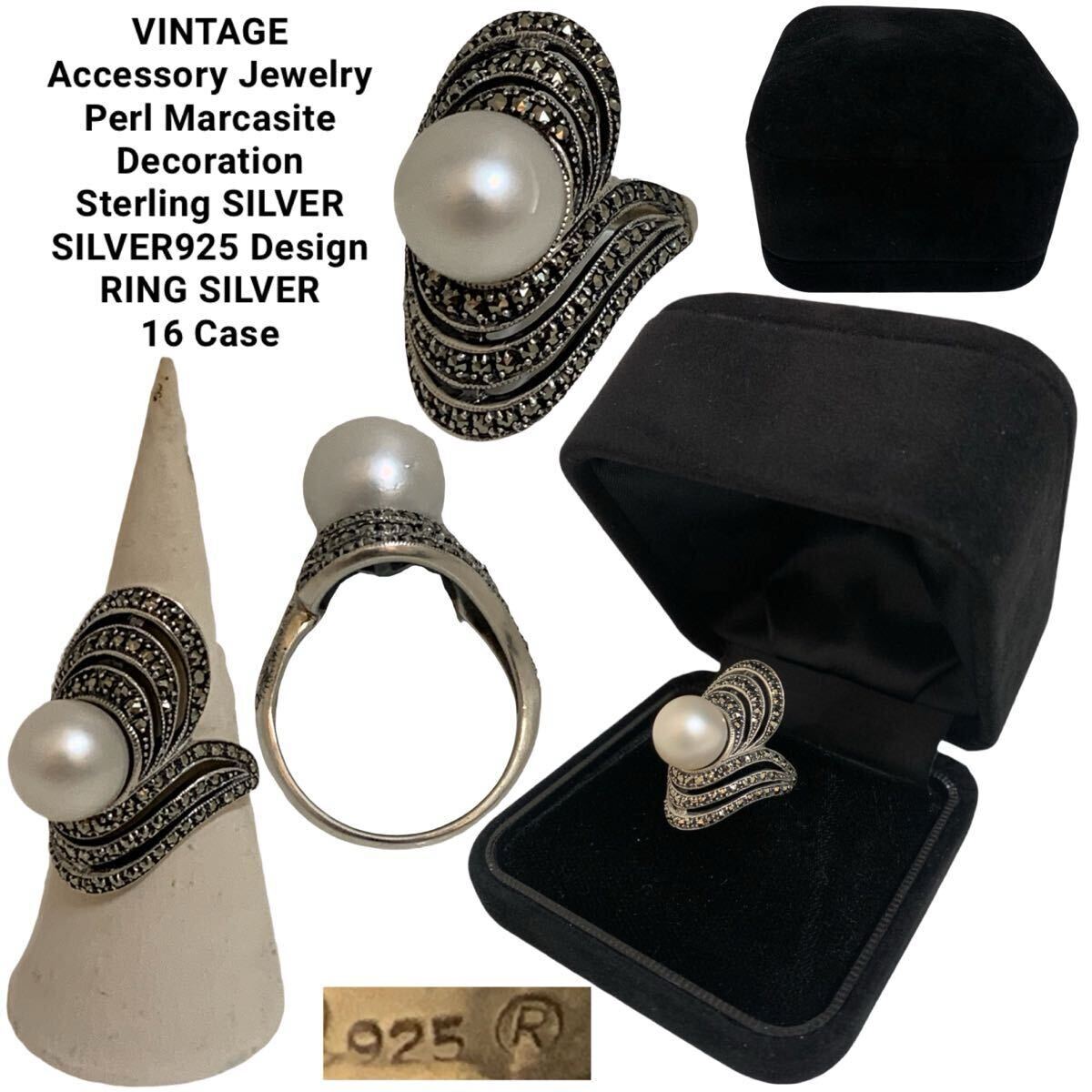 - VINTAGE ヴィンテージ アクセサリー ジュエリー パール 真珠 マーカサイト装飾 スターリング SILVER925 デザインリング 16号位 アーカイブ