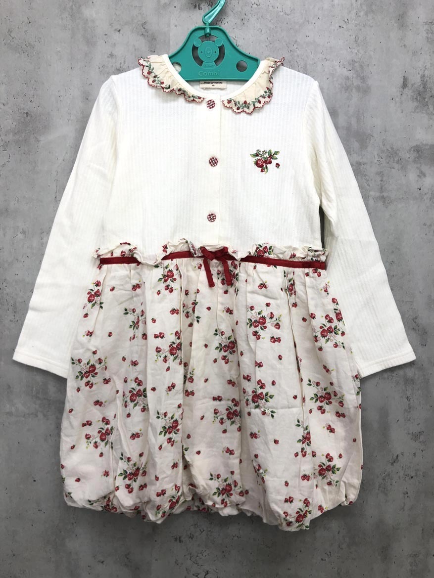 - ゆうパケットOK 美品 sense of wonder センスオブワンダー オーガニックコットン いちご柄 野イチゴ 長袖 ワンピ size120/エクリュ ■◇