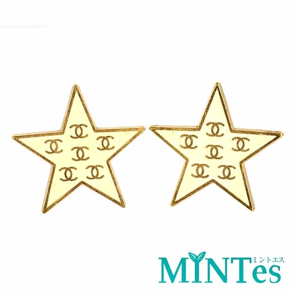 > Chanel シャネル ココマーク スター イヤリング ゴールド×ホワイト メタル アクセサリー ワンポイント デイリー スタイリッシュ