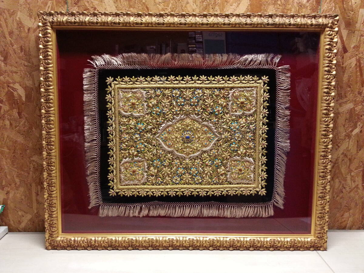 > 宝石絨毯 ジュエリーカーペット 額サイズ 860mm×1050mm アンティーク カシミール? ジュエルカーペット