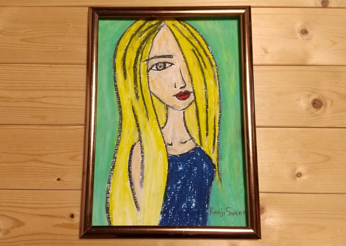 - 【ブロンドヘアー】手描き 肉筆 クレヨン画 人物画 美人画 絵画 A4サイズ 786,Crayon painting, oil pastel painting, original art