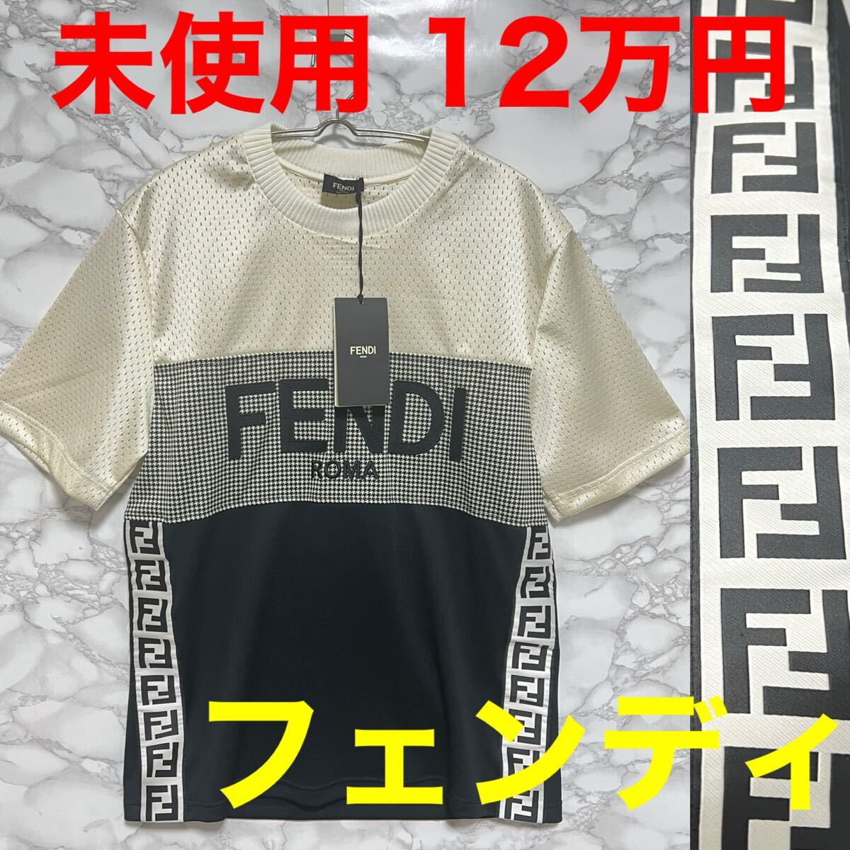 > FENDI フェンディ 未使用 テクニカルメッシュTシャツ ブランドロゴ FF柄 ブラック クラウド色 サイズXS 半袖