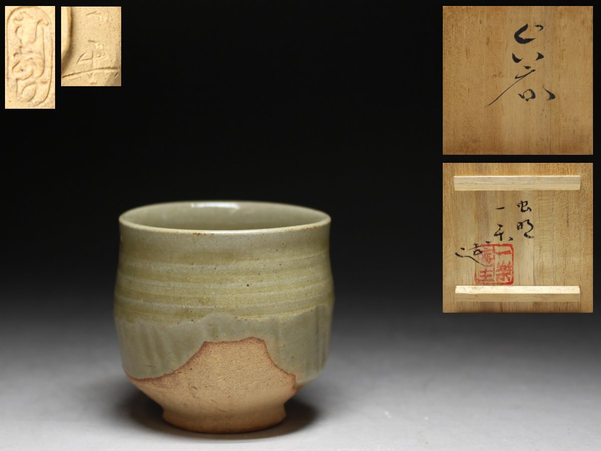- ◆虫明焼・県重要無形文化財・黒井 一楽・ぐい呑・酒器・共箱・共布・栞◆a2545U
