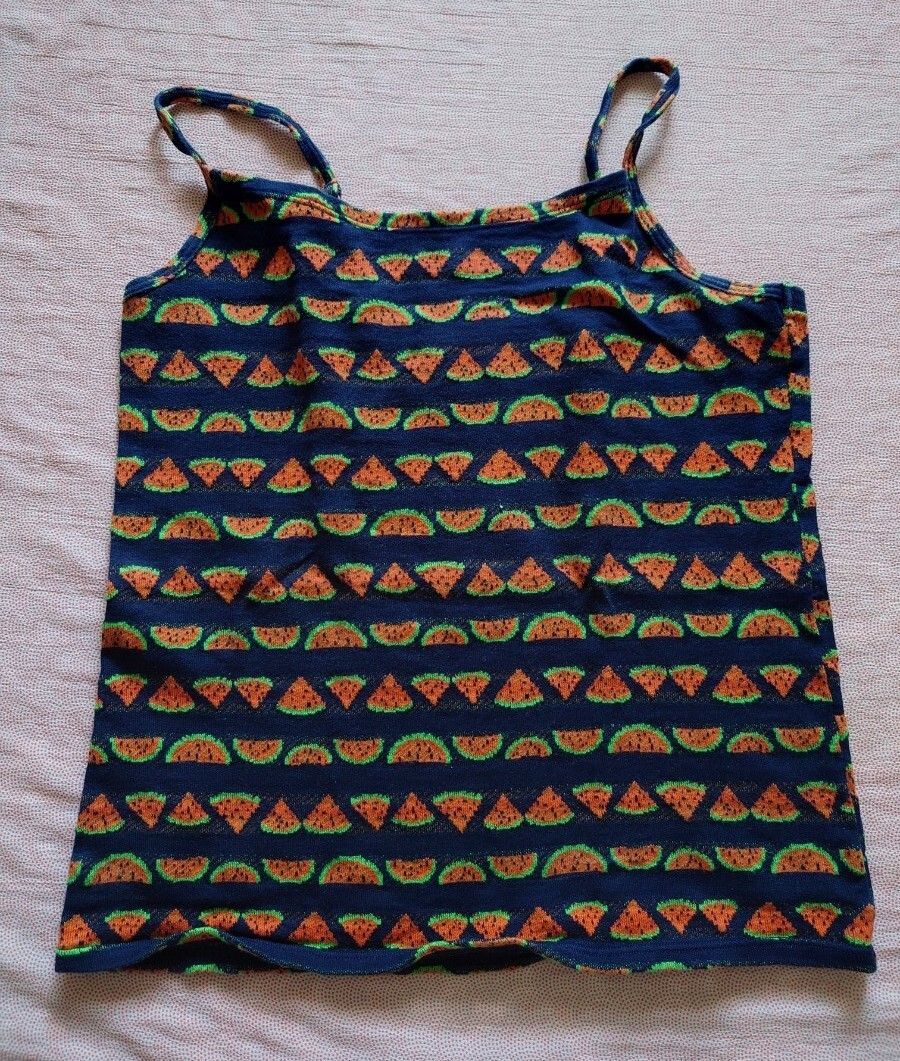 - 送料込 ウンナナクール ワコール Lサイズ スイカ柄 キャミソール タンクトップ ニット生地 コットン 黒 ブラック 西瓜 すいか