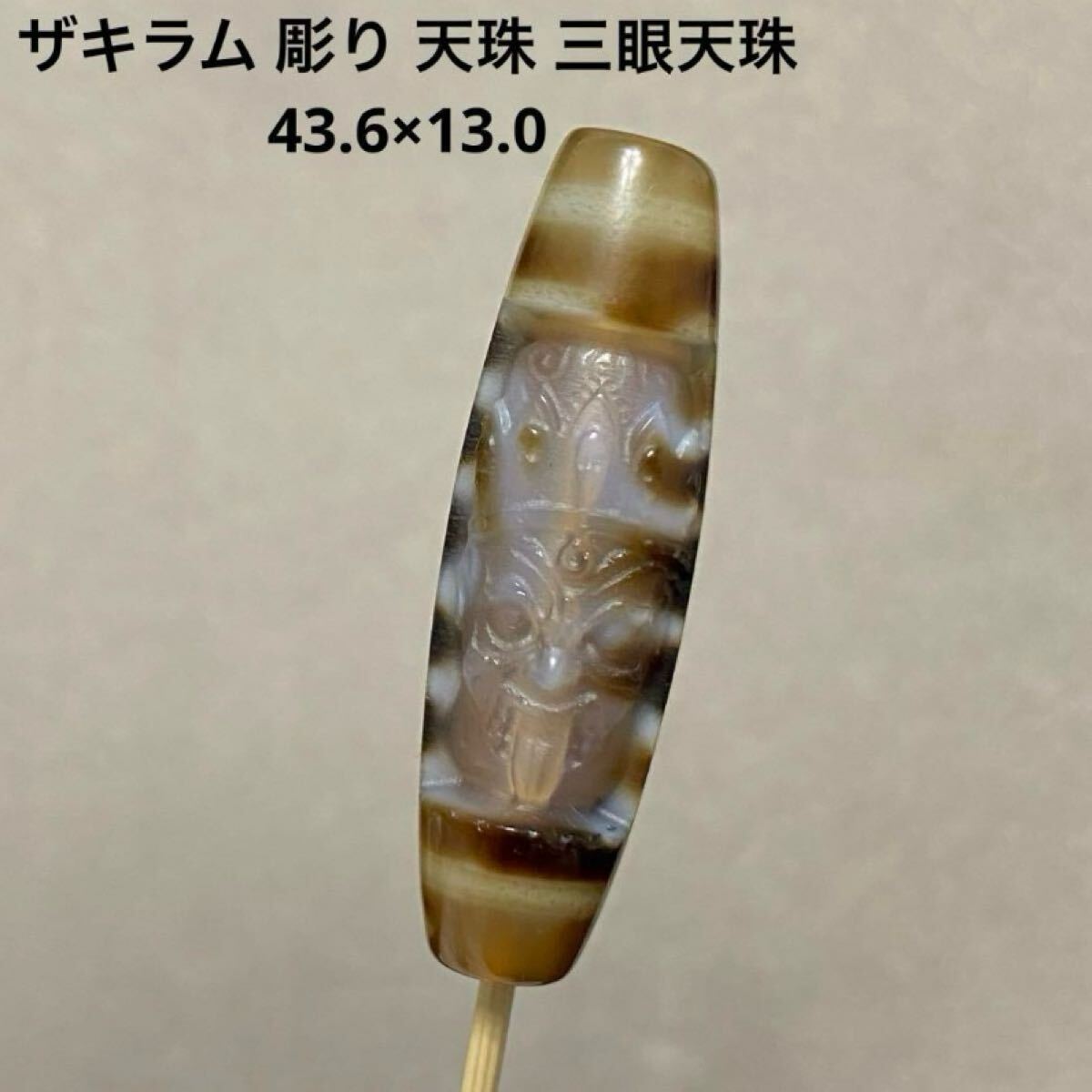 - C859 ザキラム 彫り 天珠 三眼天珠 43.6×13.0