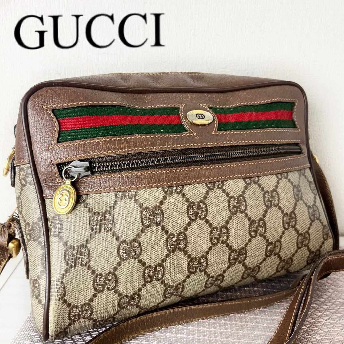> GUCCI グッチ GGスプリーム 総柄 レザー ショルダーバッグ ショルダーバック シェリーライン ロゴ インターロッキング PVC ゴールド金具