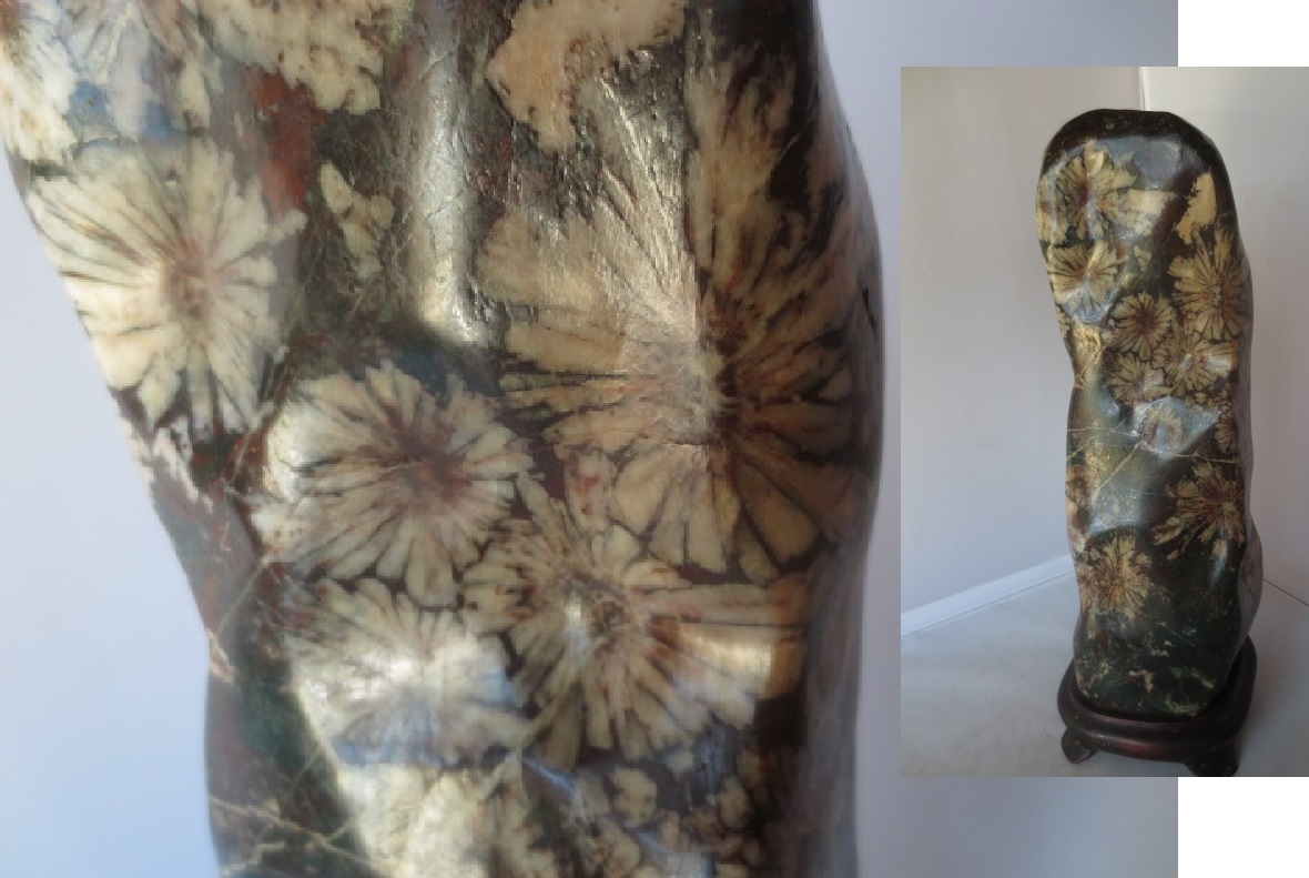 - 【艸】 菊花石 根尾菊花石 時代石 花多数 文様石 美石 2des1