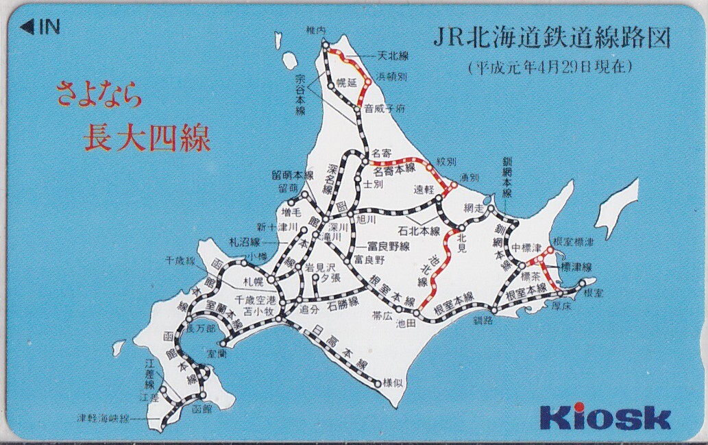 - =KIOSK 北海道= 「北海道路線図」販売テレカ #w