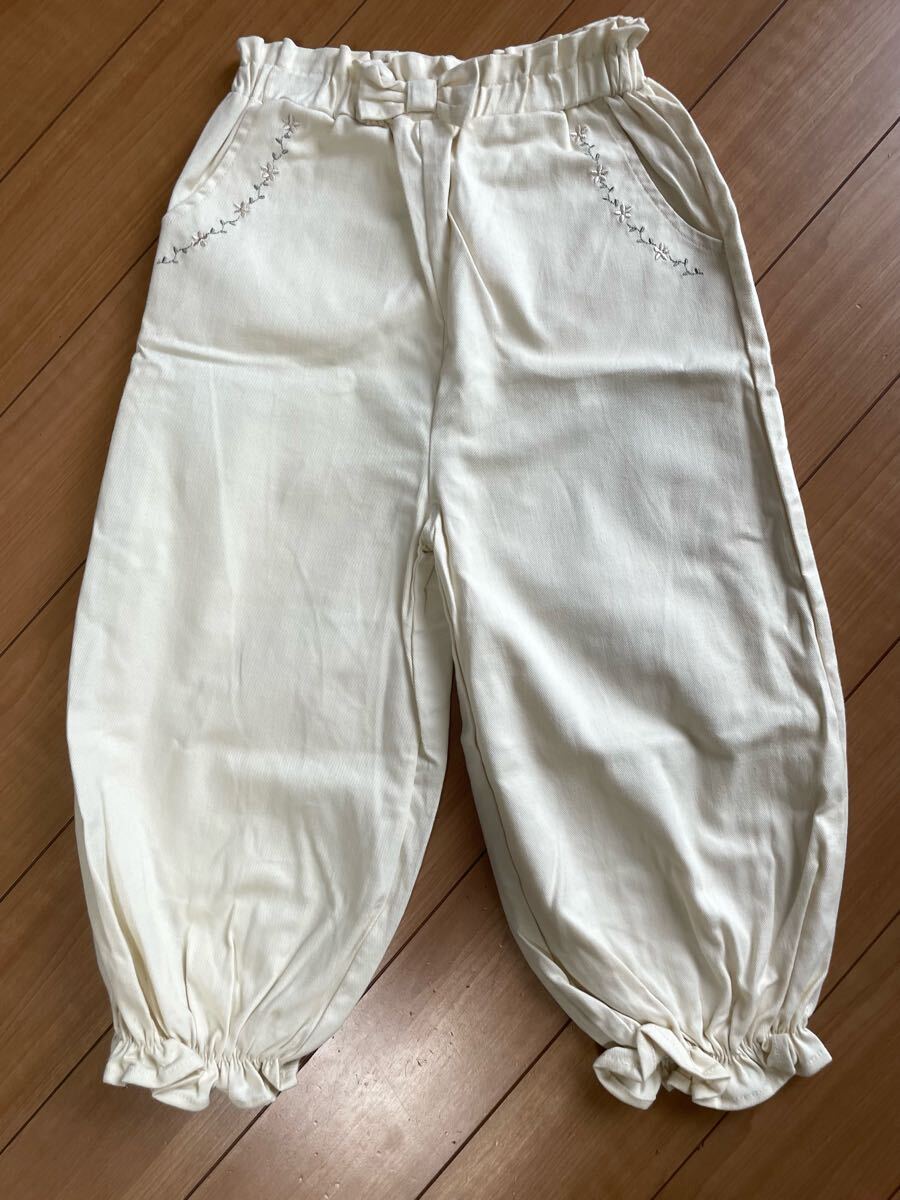 - ★未使用新品!mamaraku☆裾絞りデザイン&刺繍がかわいい!おしゃれデニムパンツ 130☆送料185円★