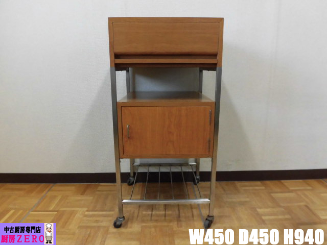 中古厨房 業務用 ラック ワゴン 木製 ステンレス枠 戸棚付き 引き出し