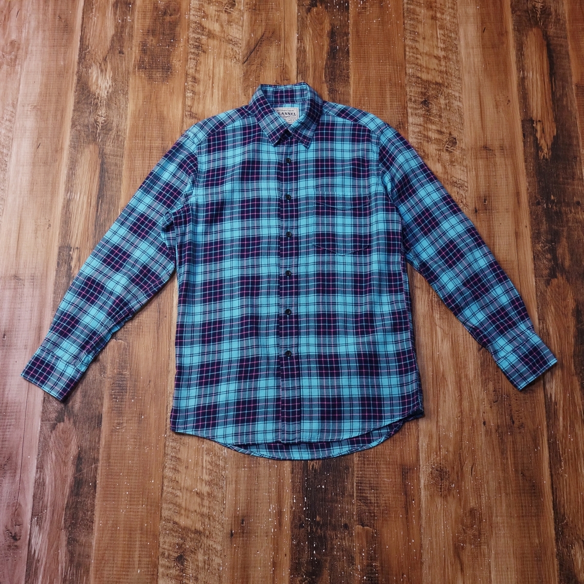 - 美品 ユニクロ UNIQLO フランネルチェック長袖シャツ メンズ カジュアル 秋冬 起毛 Sサイズ ブルー系チェック ON42