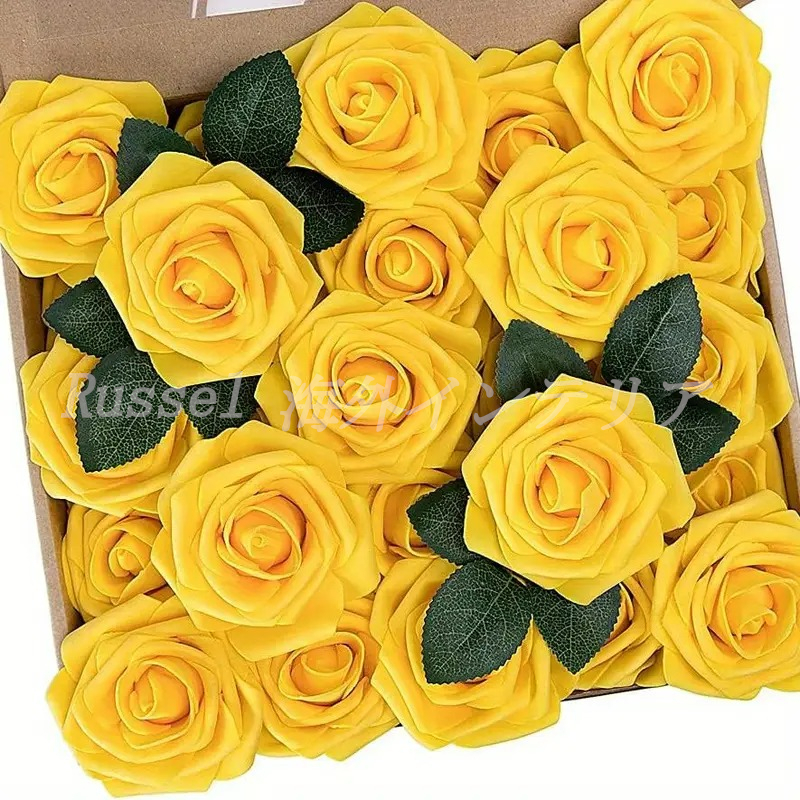 > フェイクフラワー 薔薇 造花 25本セット エレガント イエロー 黄色 人工 お洒落 デコレーション インテリア おしゃれ アレンジメント 4-7