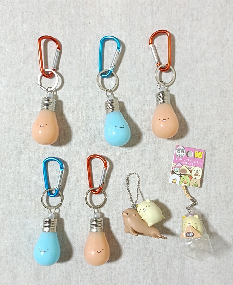 - すみっコぐらし ほわっと光る! 電球ライト とんかつ とかげ ご当地 根付け 水族館 マスコット キーチェーン San-X サンエックス
