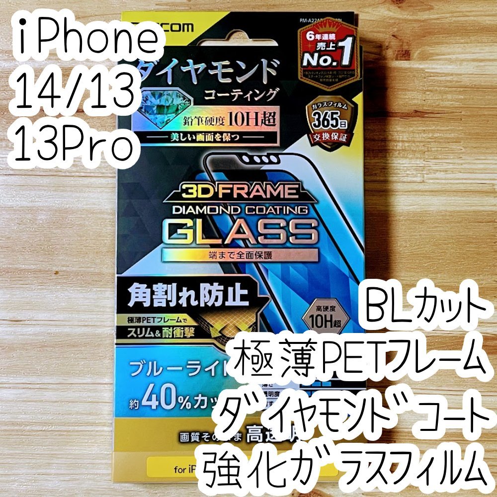 > エレコム iPhone 14・13 Pro・13 ガラスフィルム ブルーライトカット ダイヤモンドコーティング 高透明 液晶保護 シールシート 661