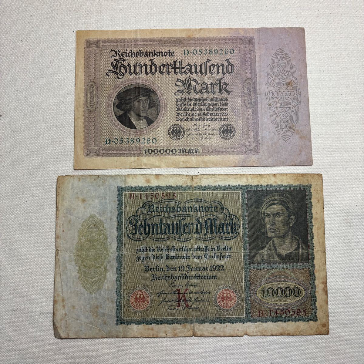 - ドイツ 10,000マルク 10万マルク 2枚セット 旧紙幣(失効券) 古紙幣 古札 ヴィンテージ アンティーク 外国紙幣 レトロ 希少価値