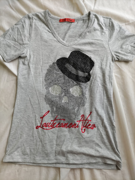 - ロートレアモン グレー どくろの半袖Tシャツ
