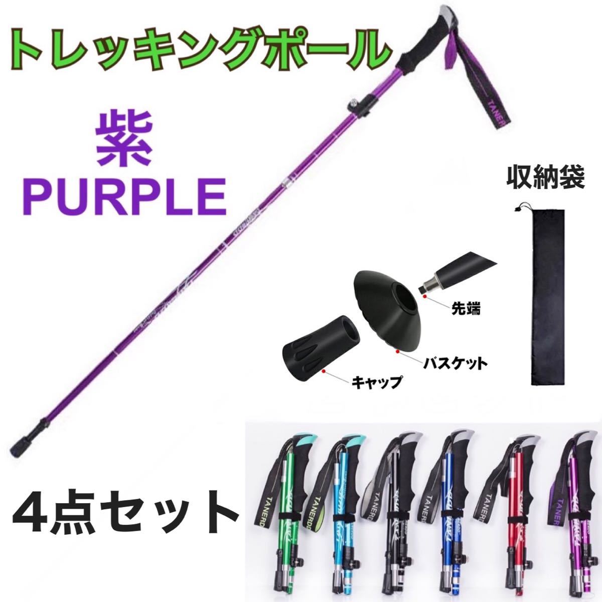 - 紫 1本 トレッキングポール 登山ストック ステッキ 収納袋付き 折りたたみ式 かばん収納 軽量 コンパクト アルミ製
