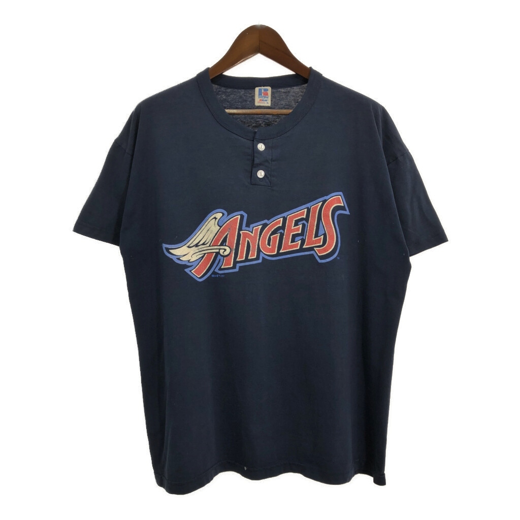 > 90年代 USA製 RUSSELL ATHLETIC ラッセル MLB ロサンゼルス・エンゼルス ヘンリーネック 半袖Tシャツ(メンズ XL)中古 古着 U0701