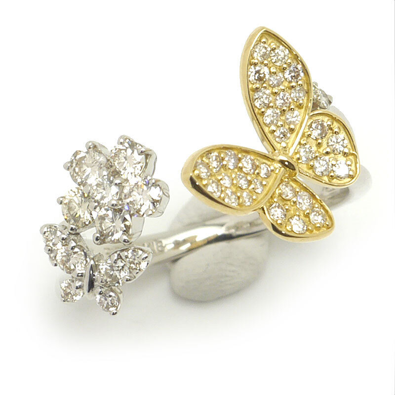 - ダイヤモンドリング 約11.5号 PT950・K18YG・ダイヤ0.66ct 蝶 フラワー