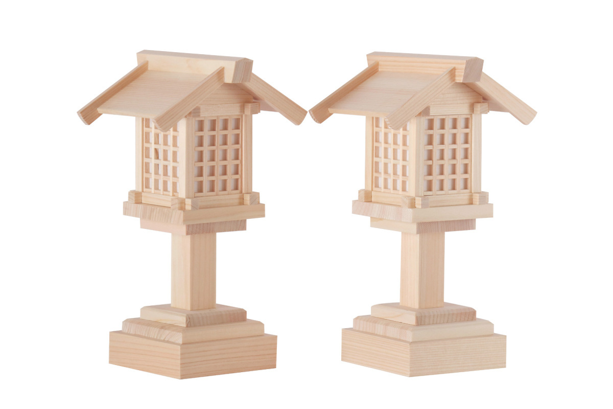 - 神棚用 柏手灯篭 ゆらぎ 一対 桧 木製 灯ろう 手を叩いて LED 点灯 コードレス 電池式