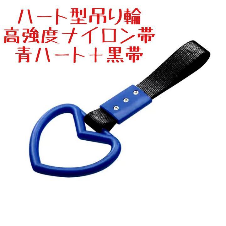 > ハート 吊り輪 吊り革 青+黒帯 高強度ナイロン帯 デコトラ 電車 バス ドリフト 旧車 単車 街道レーサー JDM USDM 可愛い カスタム