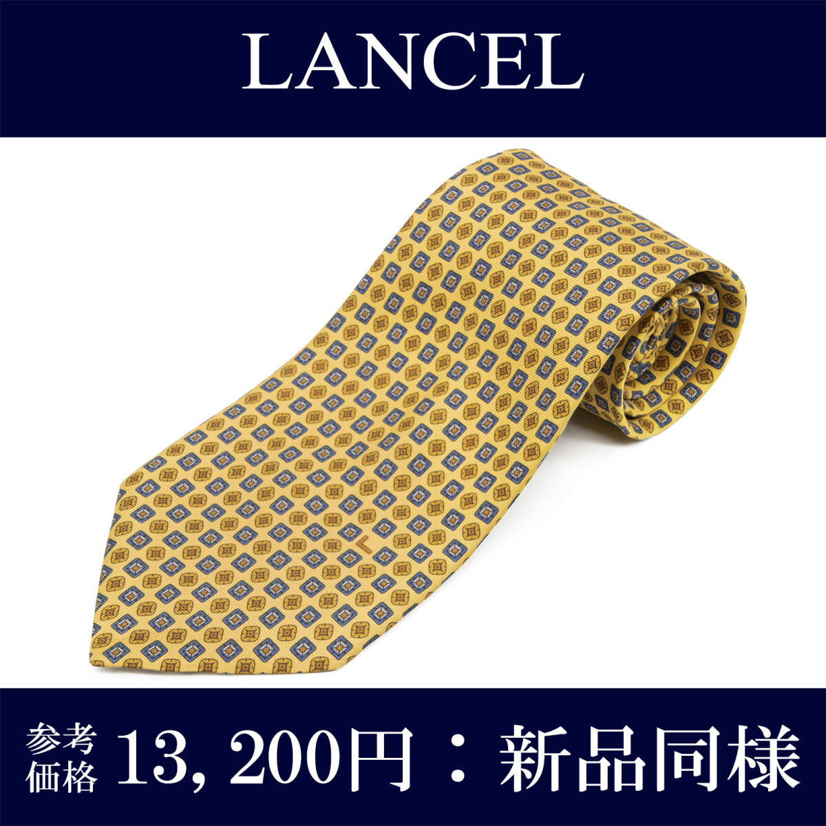 > 送料無料 ランセル ネクタイ 新品同様 シルク 黄色 イエロー 青 水色 四角 スクエア マーク 人気 ブランド おしゃれ イタリア製 綺麗 N903