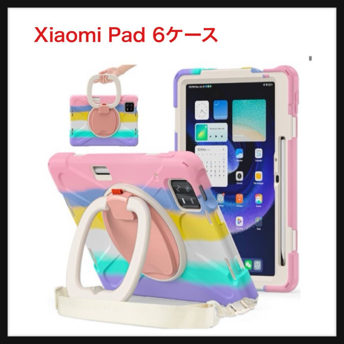 > 【開封のみ】PboyiqiS★For Xiaomi Pad 6ケース Pad 6 Pro 11.2インチカバー 耐衝撃 頑丈 360度回転スタンド ハンドル付き 虹色 かわいい
