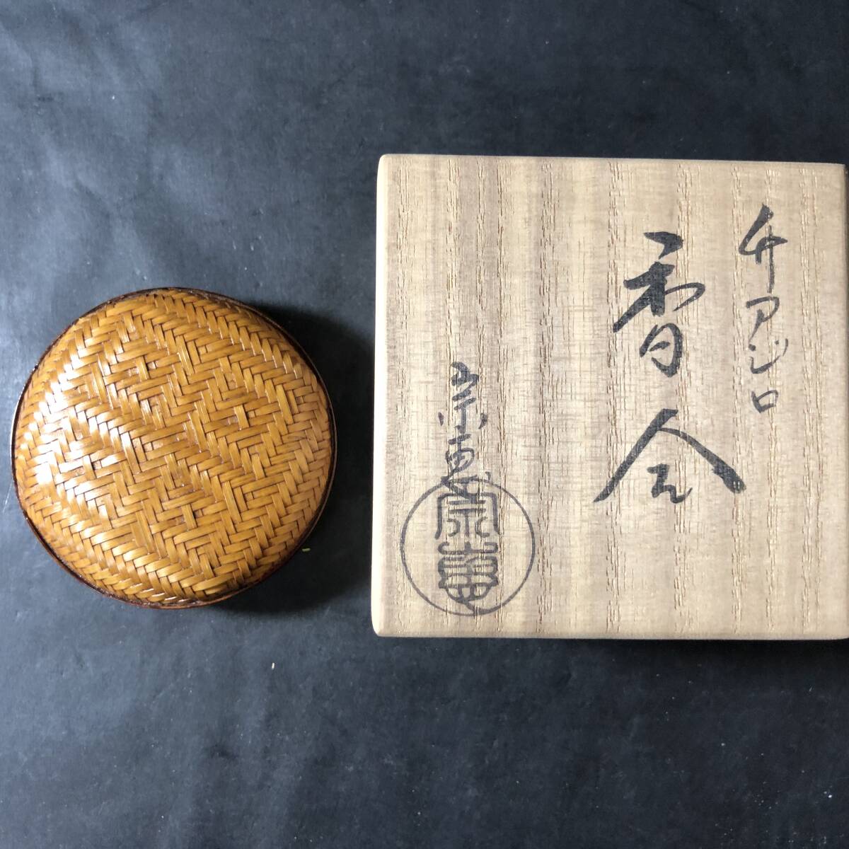 - 茶道具 未使用 海田宗恵作 竹 アジロ 香合 共箱 美品 店舗保管品 未使用 茶道具 表千家 裏千家