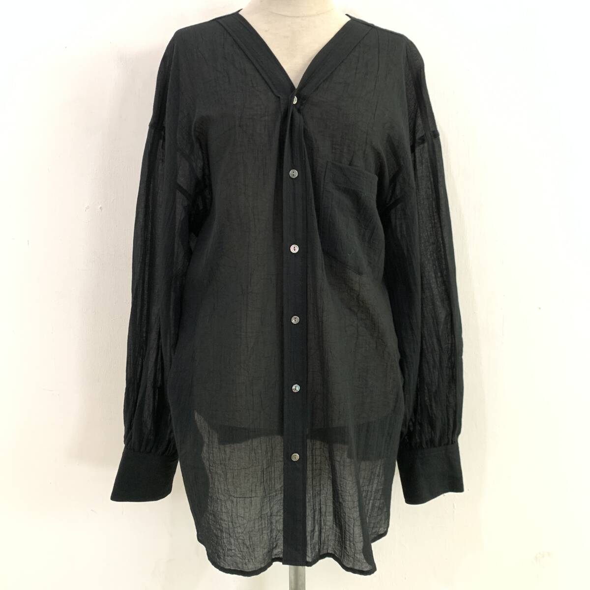- ☆Loungedress ラウンジドレス 日本製 Vネック長袖ブラウス チュニック シャツ ブラック サイズF 綿100%【レターパックプラス郵送可】A