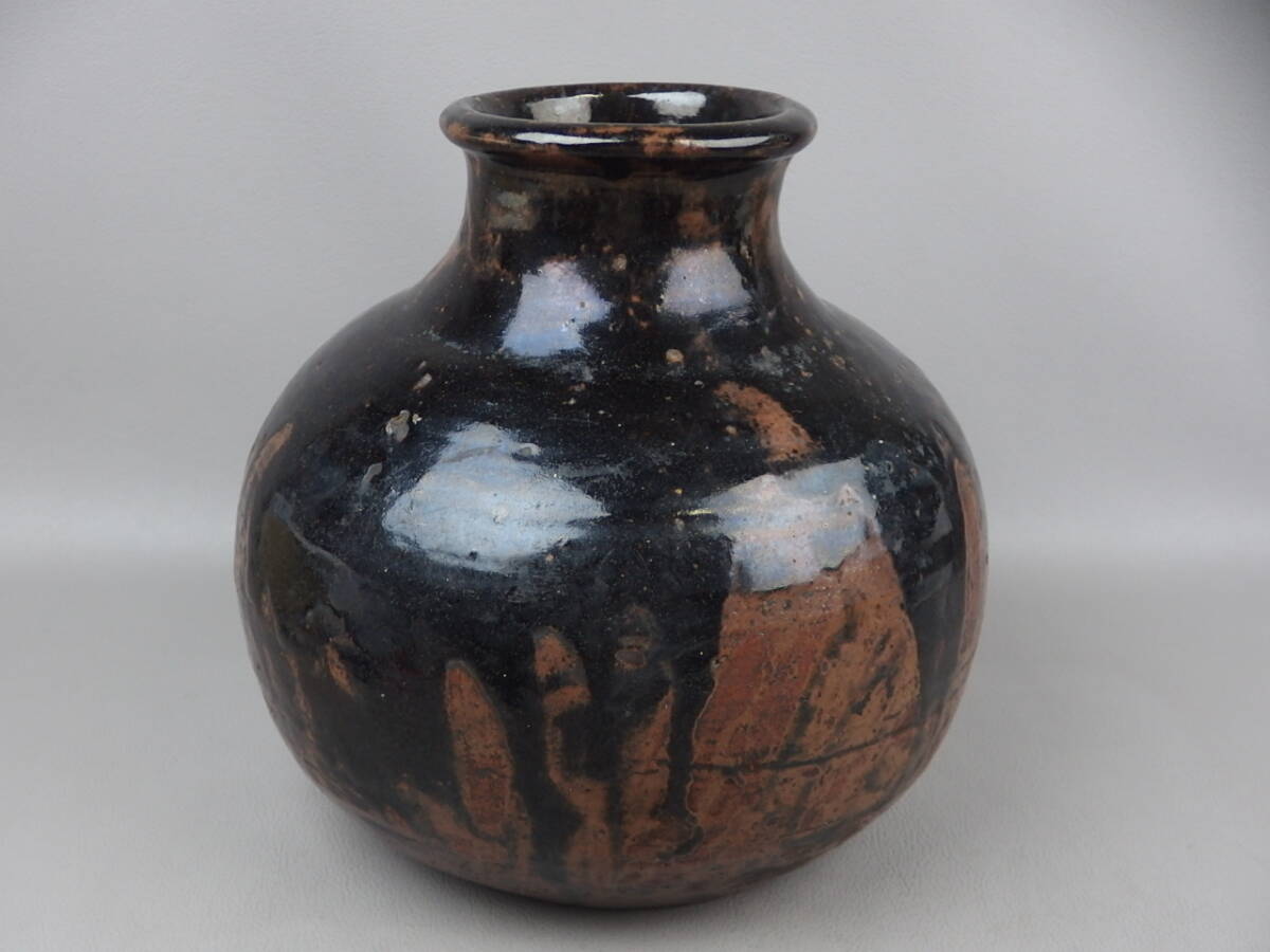 - 【骨董・茶道具】★古い 瀬戸焼?唐津焼?高取焼?★★掛釉壷 gj028yb.7 花生 花道 華道