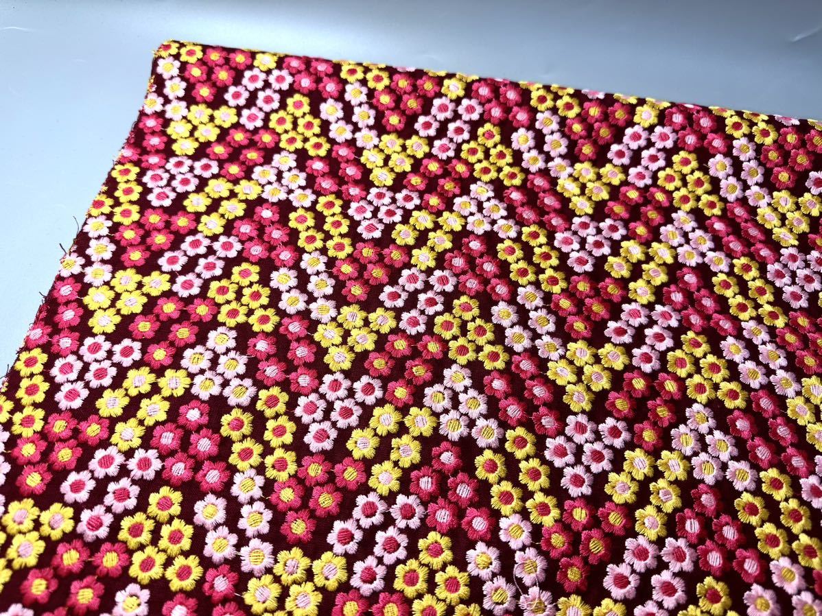 - 刺繍生地.シーチング.リネン生地・幅130cm×50cm・濃い赤