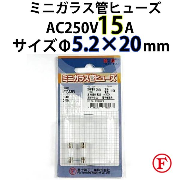 - ミニガラス管ヒューズ AC250V 15A サイズΦ5.2×20mm 1セット(2個)